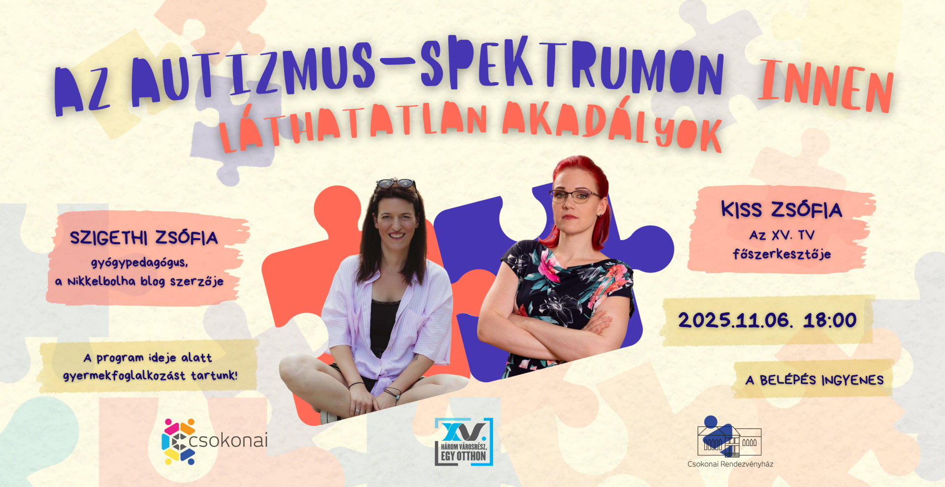 Az első alkalomra 2025. november 6-án, csütörtökön 18 órától kerül sor a Csokonai Rendezvényházban. A beszélgetőtárs Szigethi Zsófia gyógypedagógus, a Nikkelbolha blog szerzője lesz.