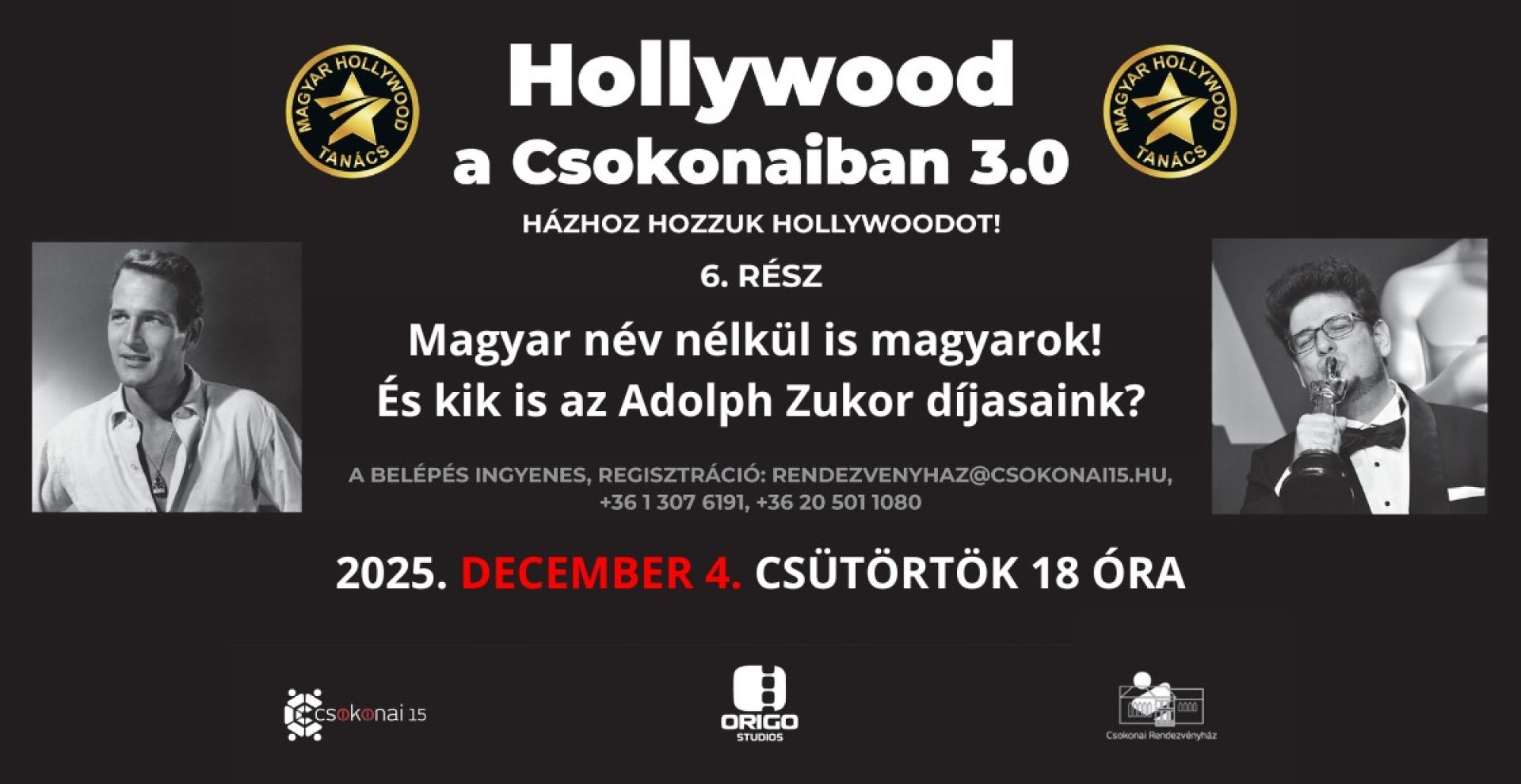 - Téma: Magyar név nélkül is magyarok! – És kik is az Adolph Zukor-díjasaink?